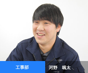 河野電気を知ったきっかけは学校の求人票でした。河野電気のことを調べていくうちに会社の強みや他の会社にない魅力などに惹かれ、学生時代に取得した電気工事の資格も活かせることができると思い入社を決めました。
